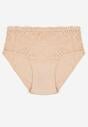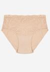 Beżowe Majtki Figi z Bawełny Zdobione Koronką Idivia