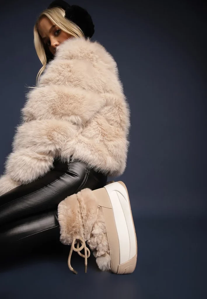 - Wybieraj stonowane, minimalistyczne śniegowce – najlepiej w czerni, beżach, szarości lub głębokim brązie.