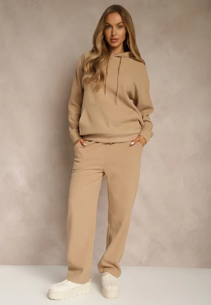 Ciemnobeżowy kolor jest bardzo uniwersalny i łatwy do stylizacji, a klasyczny dresowy krój sprawia, że zestaw sprawdzi się zarówno w domu, jak i poza nim. To must-have w garderobie każdej dziewczyny, która stawia na balans między aktywnością a odpoczynkiem.