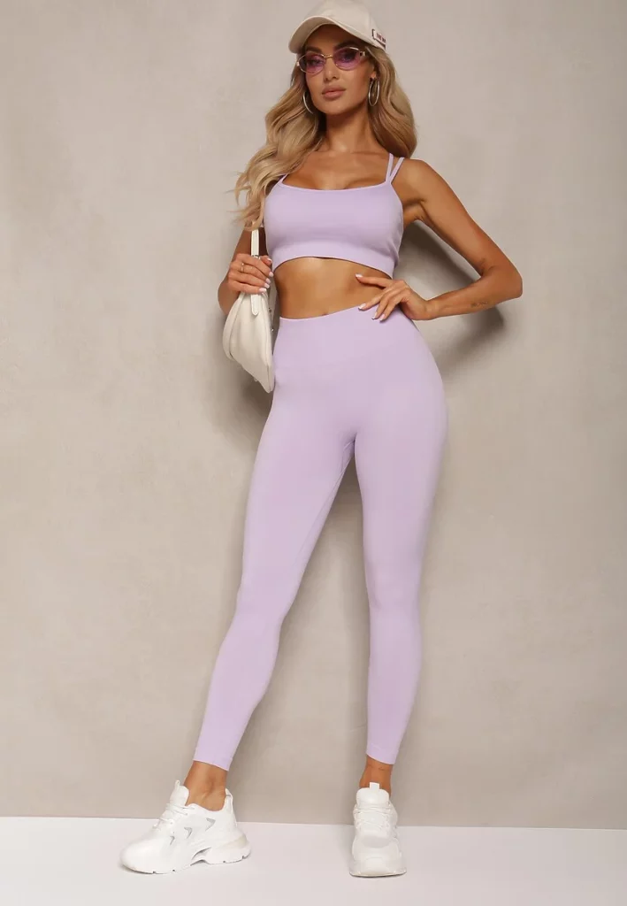 - 1.2. Fioletowy Elastyczny Komplet Fitness: Usztywniany Biustonosz i Legginsy z Gumką Orbinra 💜