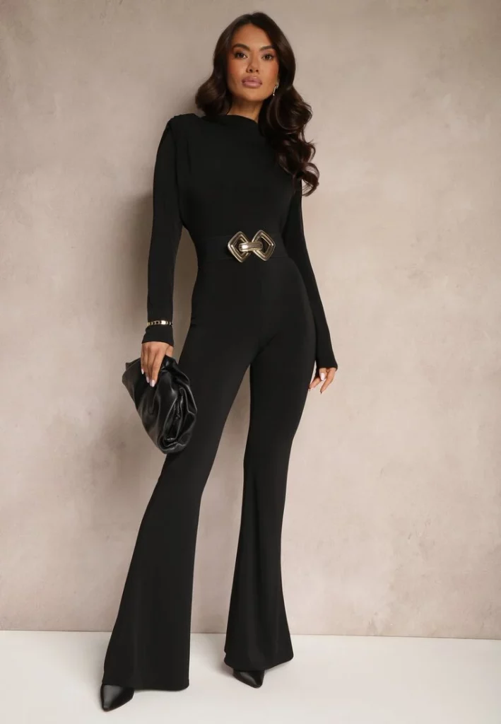 Kombinezon to szybka odpowiedź na pytanie „co na kolację, żeby potem pokręcić się jeszcze do rana?”. Taliowany krój modeluje sylwetkę, a ozdobne wycięcie z tyłu dodaje seksapilu bez nadmiaru. Czarny, elegancki i praktyczny.