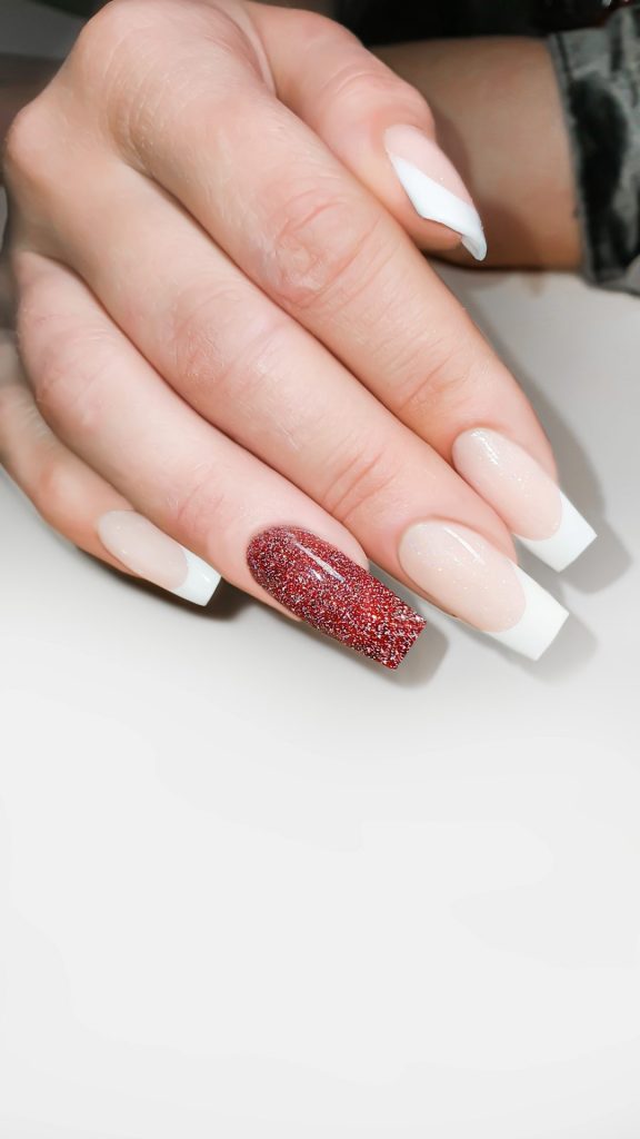 Zapomnijcie o standardowym białym końcu paznokcia! W tym roku odwrócony French jest absolutnym hitem. Zamiast klasycznie białej końcówki, baza paznokcia jest kolorowa lub nude, a linia French w kontrastującym odcieniu – np. czerwonym, burgundowym, pastelowym czy metalicznym. Efekt? Paznokcie wyglądają świeżo, nowocześnie i elegancko, a przy tym zachowują subtelną romantyczną nutę.