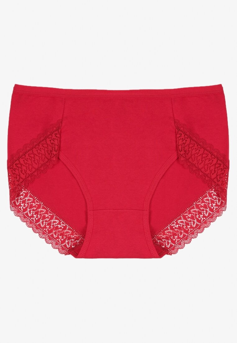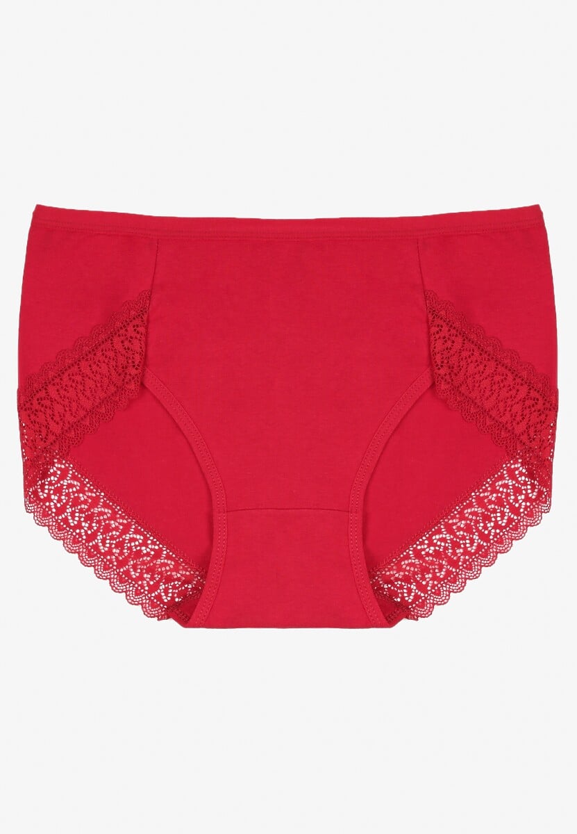 Bordowe Bawełniane Majtki Figi Zdobione Koronką Idilene