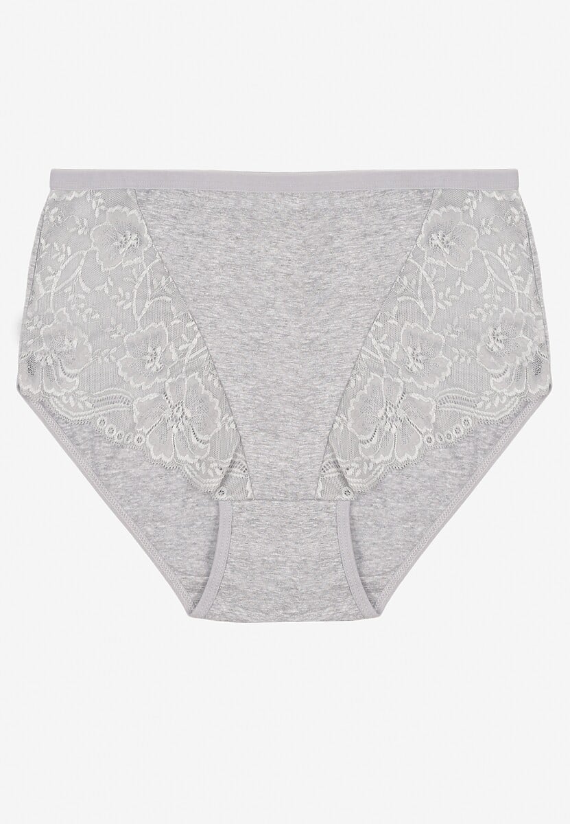 Szare Majtki Figi z Bawełny Zdobione Koronką Idiara